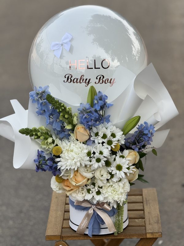 סידור פרחים יוקרתי בתוספת בלון ממותג