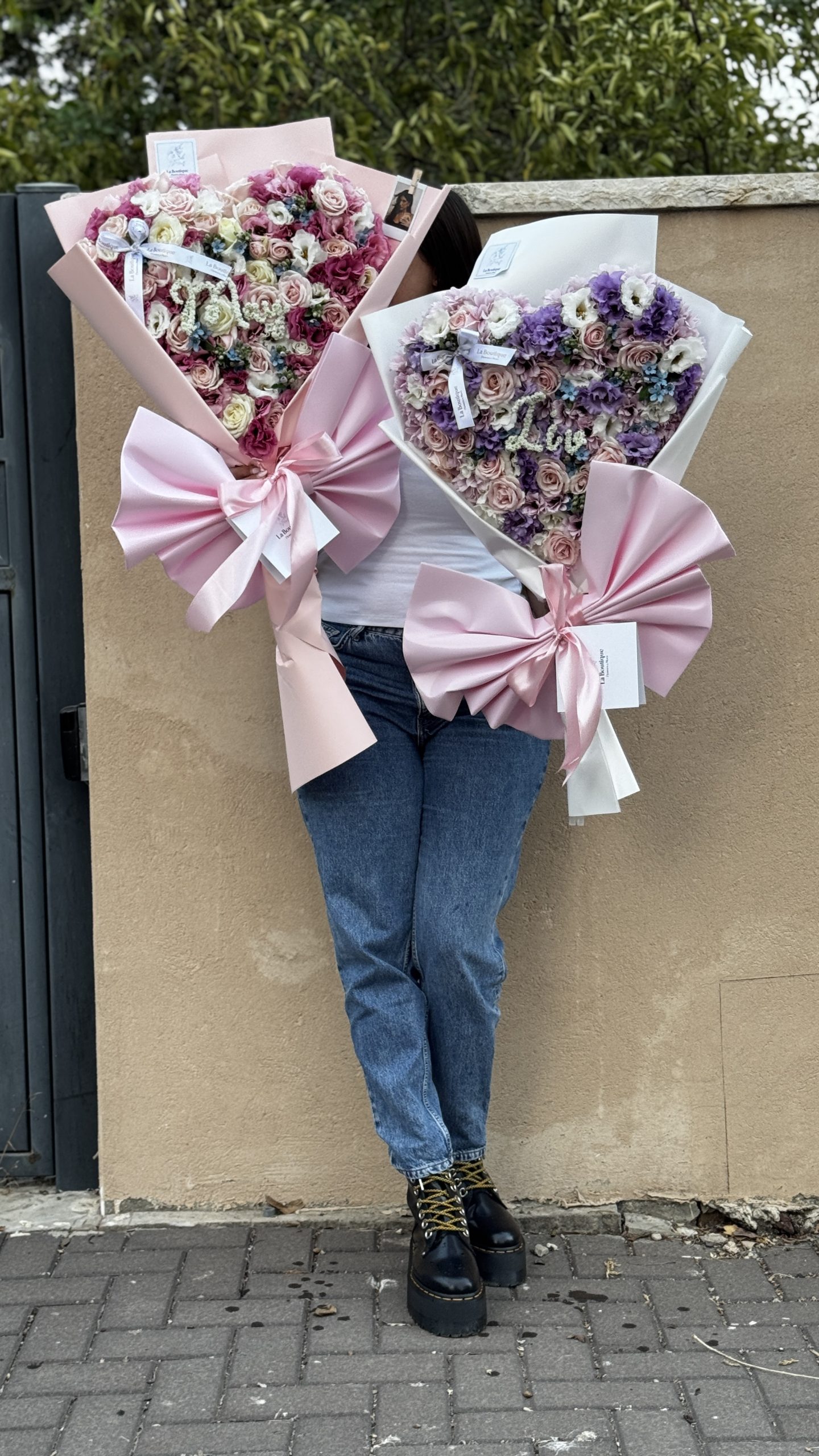 זר גדול בצורת לב שזור בפרחים מפרחי העונה